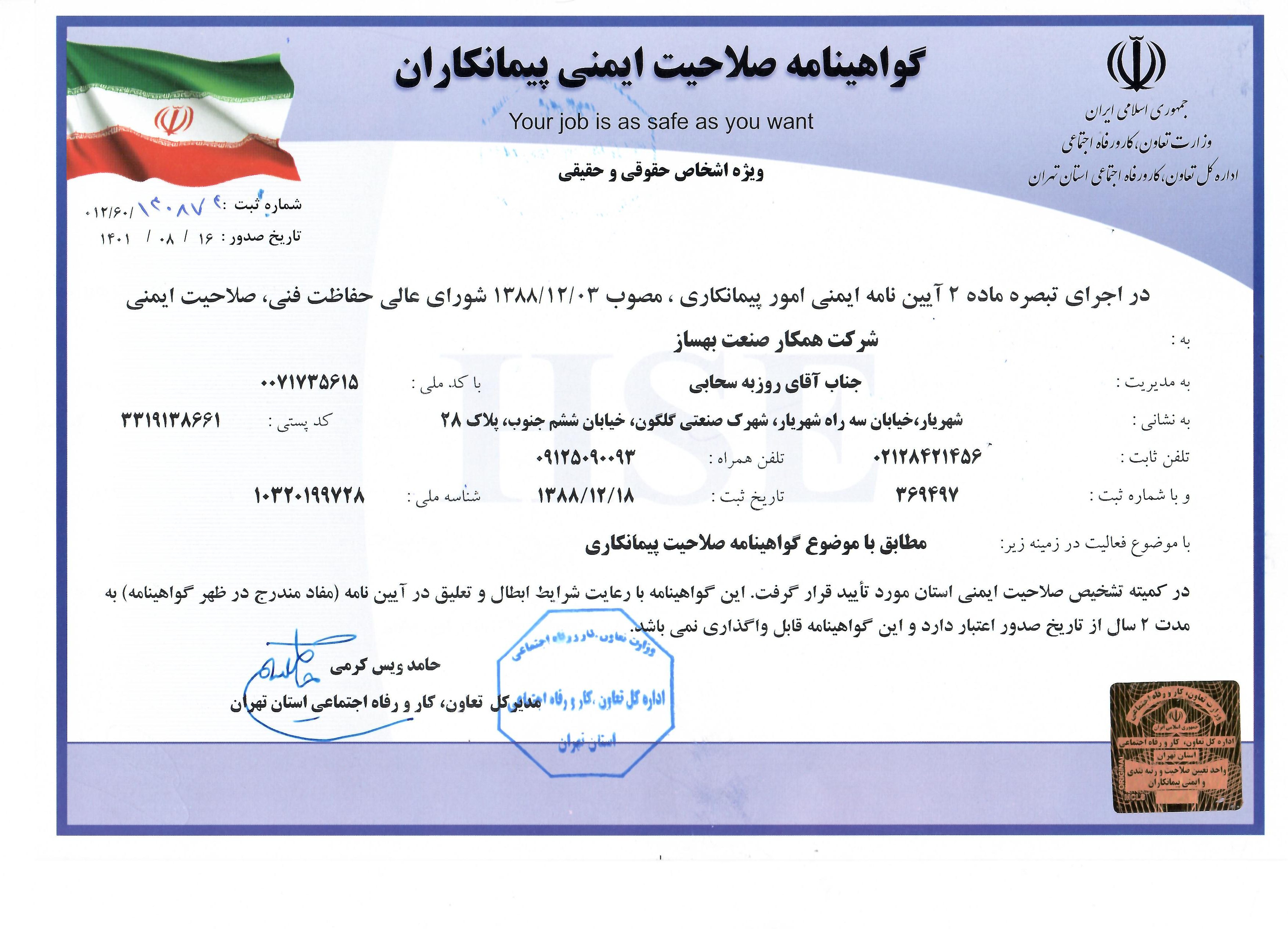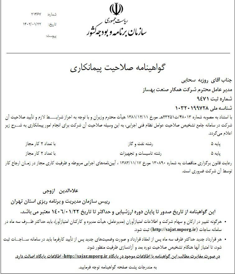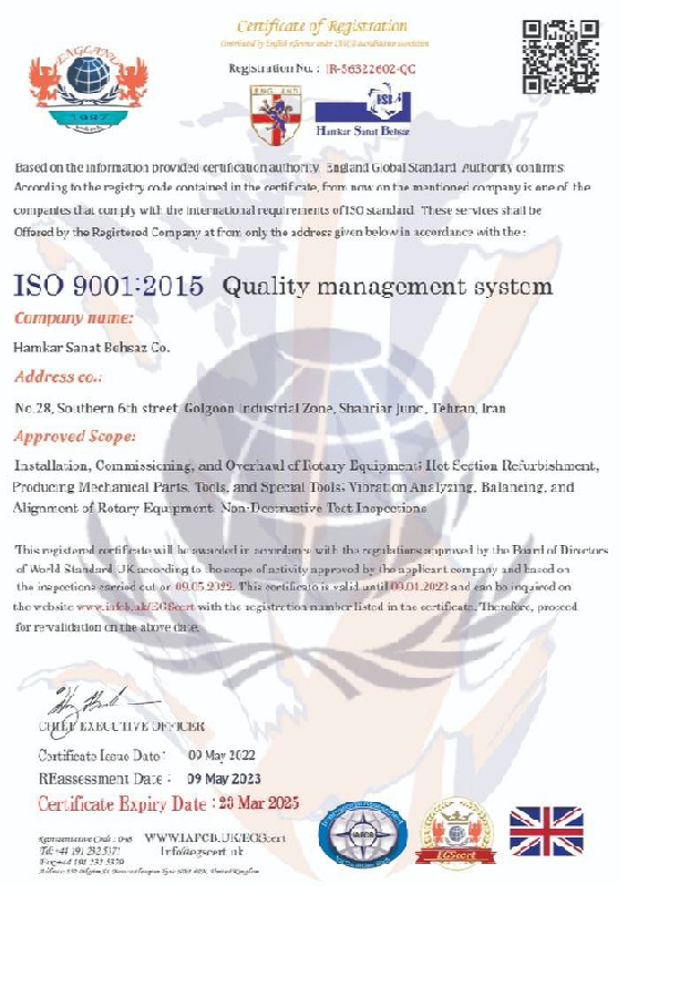 گواهینامه پیمانکاران بازسازی قطعات داغ توربین گازی